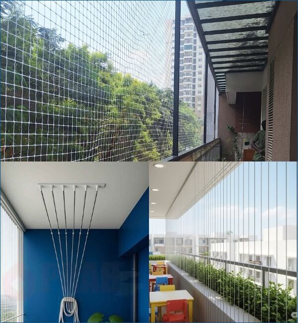 Balcony safety nets prevent accidental falls and stop birds entering, ensuring safety for children, pets, and family members.